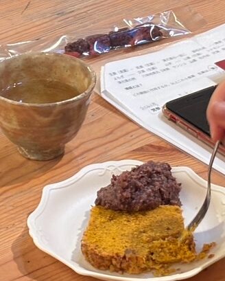 ●麹の甘味だけの麹あんこ。パウンドケーキに餡子は合わないようですが、甘味が足りない方はこの組み合わせもいいかと考えました。麹の甘酒同様、麹の甘味は、とてもまろやかで有難いです。
