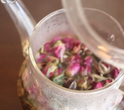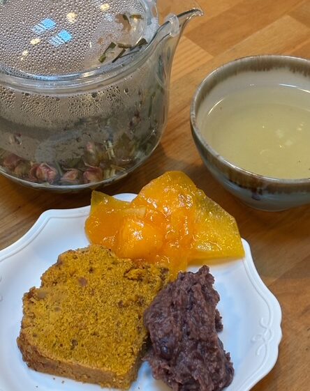 ●甘味のケーキや麹あんことともに身体を温めリラックスしていただき眼福なマイマイカの薔薇とレモングラスのお茶